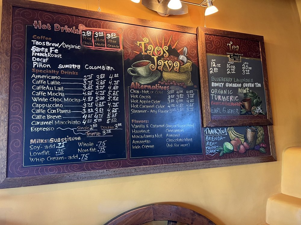 At Taos Java, coffee isn't just a drink; it's a celebration. The extensive blend of specialty drinks will tantalize even the most discerning coffee enthusiasts. Whether you're in the mood for a classic Americano, a creamy Caffe Latte, or an indulgent White Chocolate Mocha, there's something to satisfy every palate. For those seeking alternatives, the menu also features delightful options like Chai and Hot Caramel Cider.